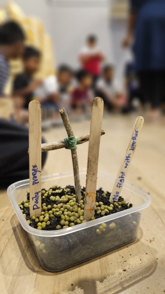 Some children carefully arranged their seeds and sticks, while others eagerly put everything together, excited to begin. In their own way, each child took part in something simple, yet meaningful.